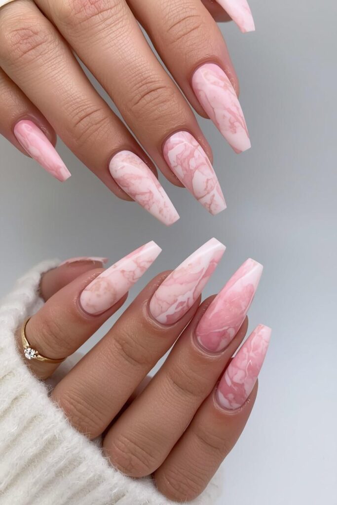 10. Pink Marble Nails