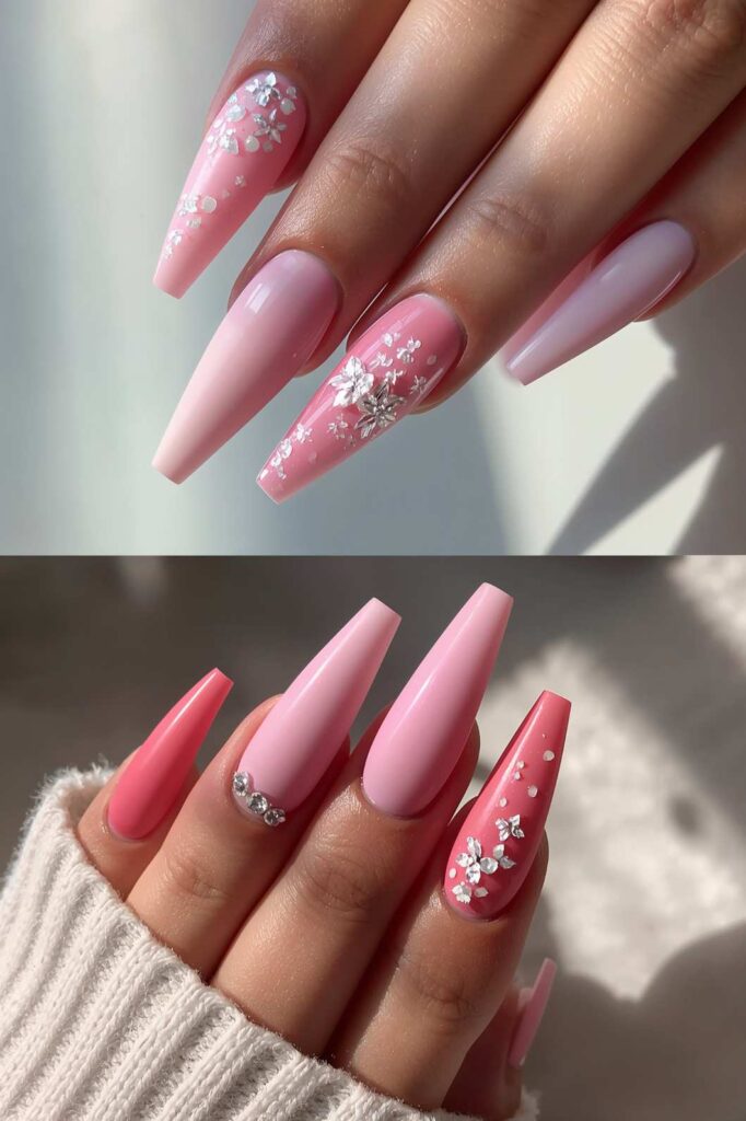 17. Pink Glitter and Silver Accents