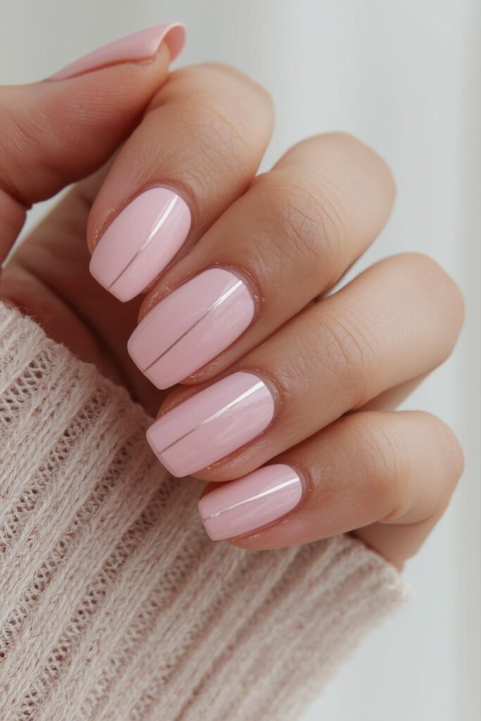 Thin, minimalist lines on soft pink nails look contemporary and stylish. This subtle design works for brides who love clean and elegant manicures.