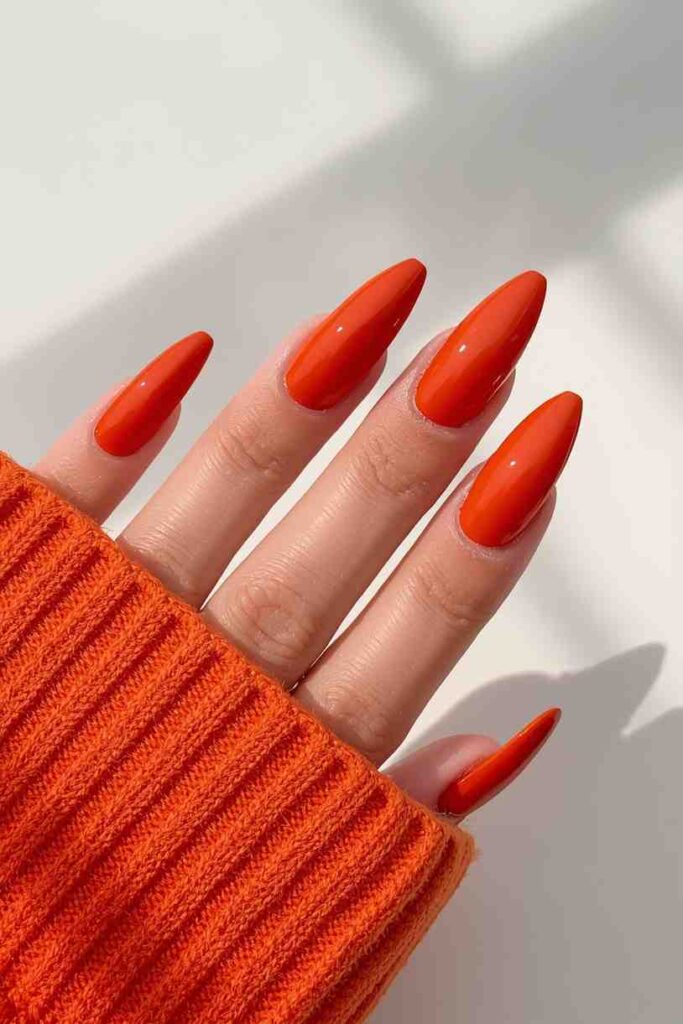 Burnt orange nails capture the essence of autumn leaves and pumpkin spice vibes. This cozy color adds warmth and energy to your look, making it ideal for fall celebrations. Pairing with gold glitter or matte textures elevates the manicure for a chic, seasonal style.