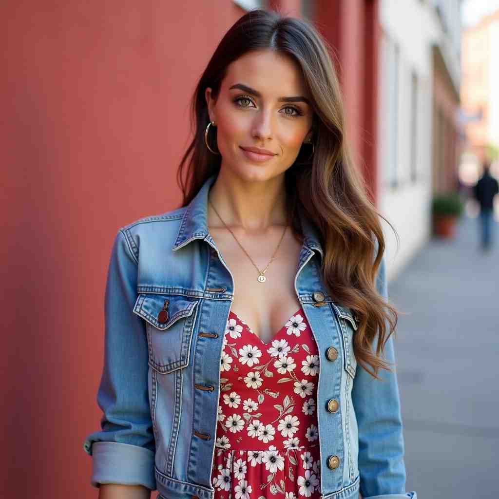 Florals are always a good idea for Valentine’s Day. A floral dress paired with a denim jacket creates a casual, feminine outfit that’s easy to wear all day. This combination feels romantic without being too formal.