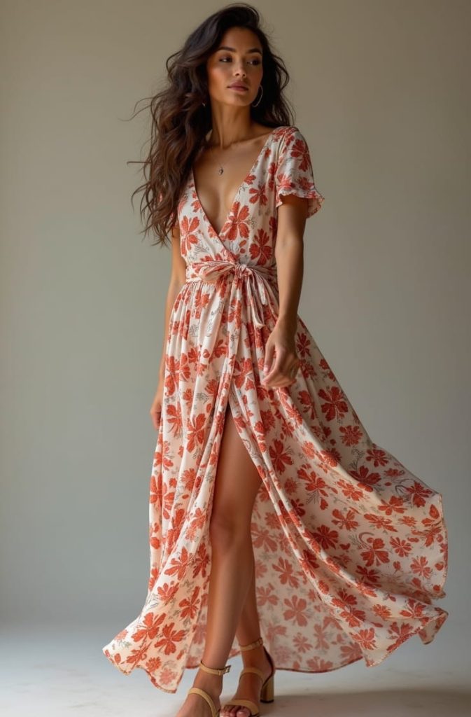 A printed wrap dress is flattering on all body types and feels effortlessly romantic. The wrap design highlights the waist while allowing flexibility and comfort throughout the day. Floral or heart-inspired prints make this outfit especially fitting for Valentine’s Day.