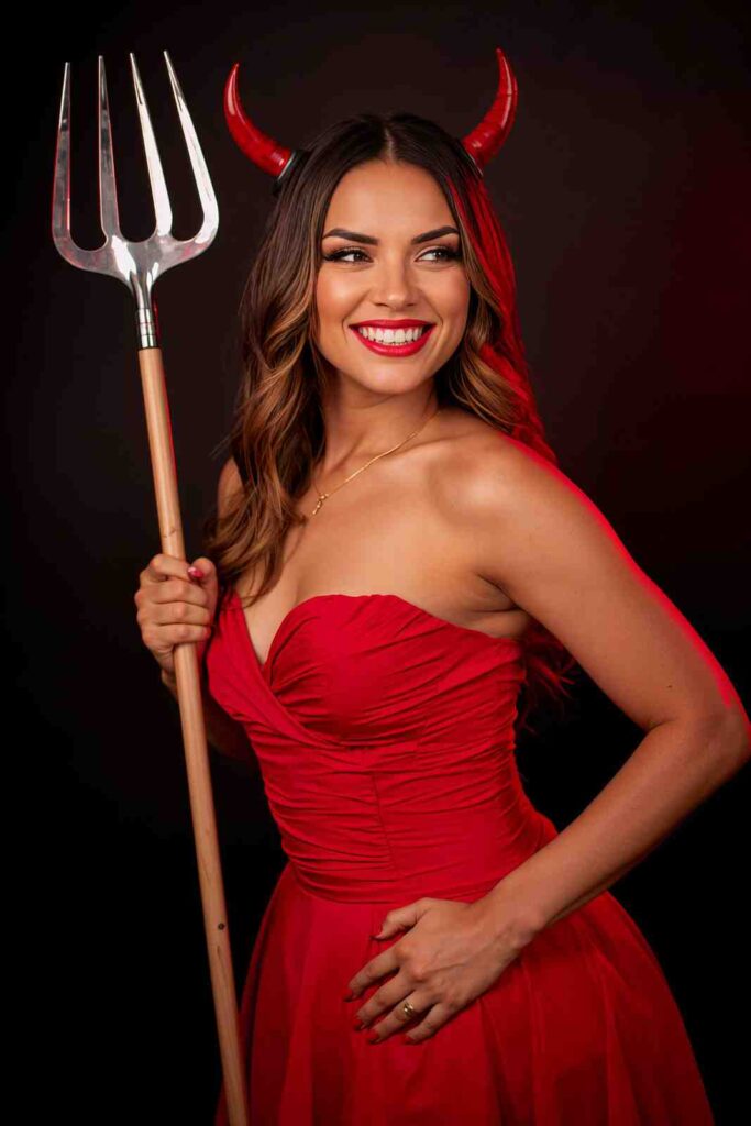 Red dress or top, devil horns, and a mischievous smile — the devil costume is effortlessly fiery. Add a pitchfork prop to complete it.