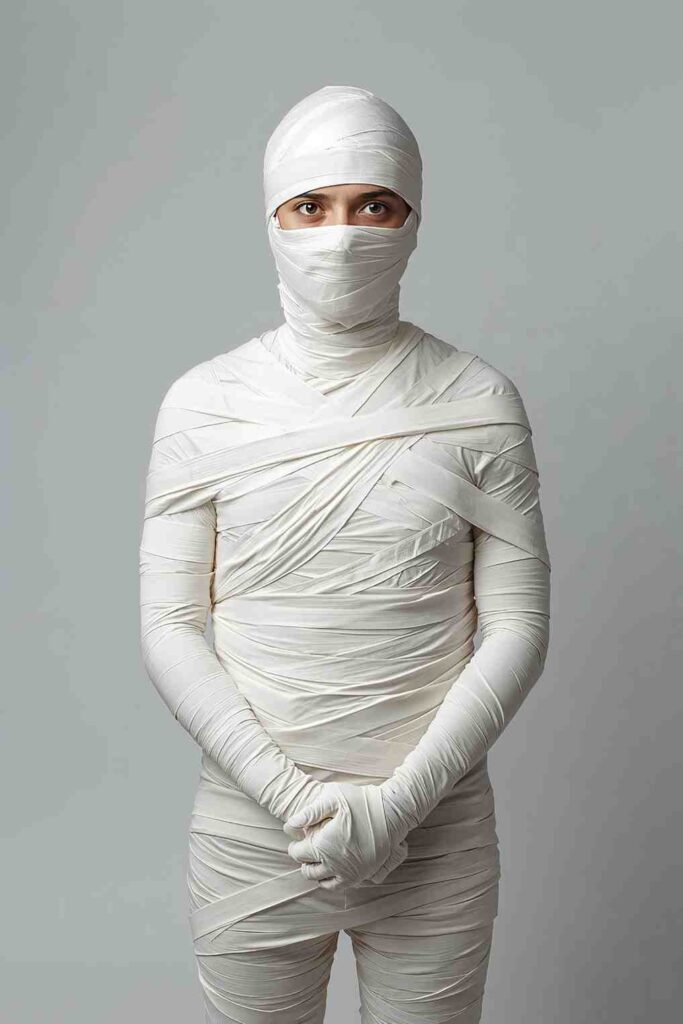 Wrap yourself in white bandages or strips of cloth — instant mummy!