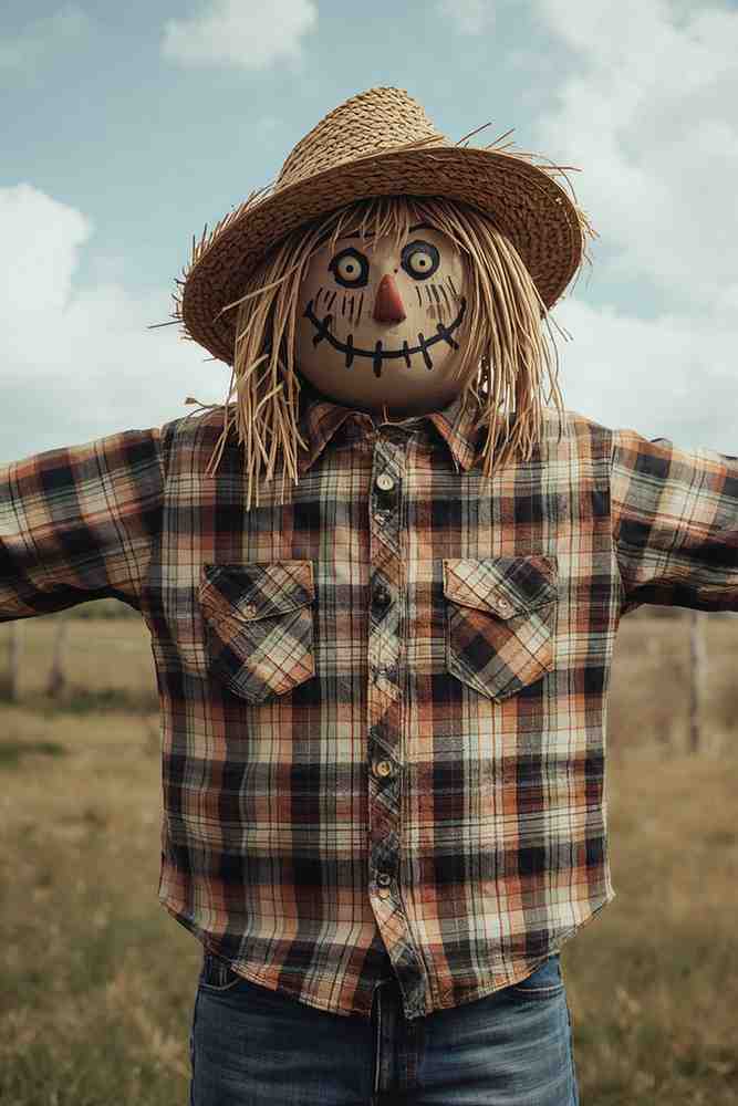 Style Tip: Add overalls, boots, and use eyeliner to draw stitches around your mouth for the full scarecrow effect.