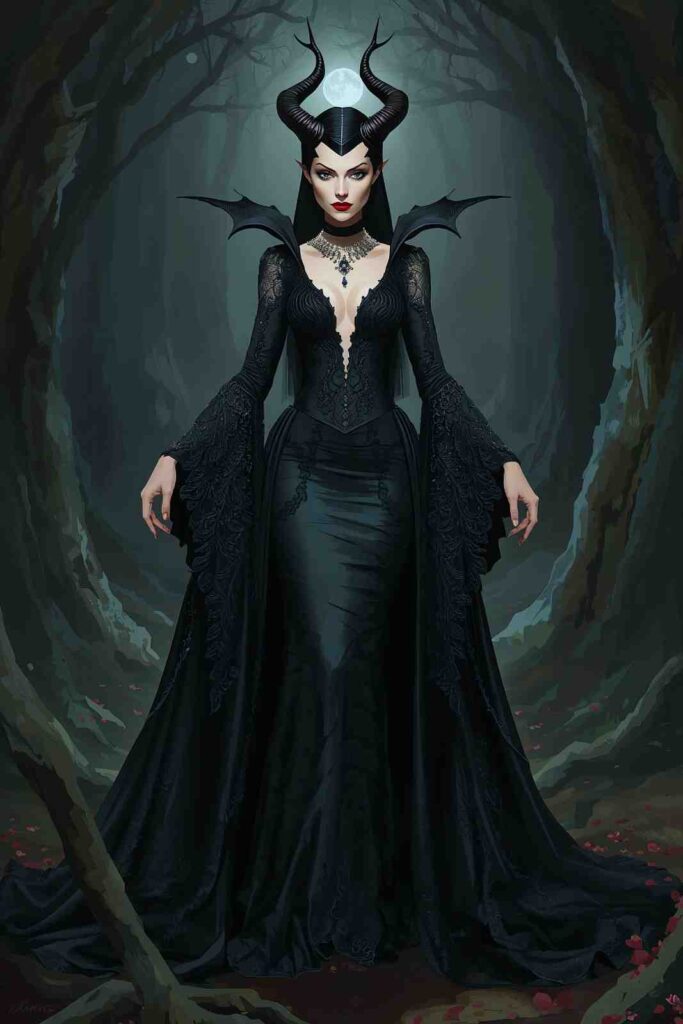 Why Try It: It’s regal, eye-catching, and perfect for elegant Halloween events.