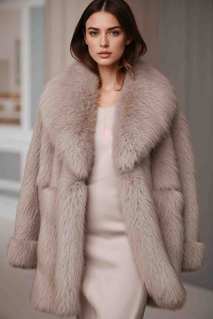 Faux fur coats elevate simple dresses into luxurious-looking outfits.
