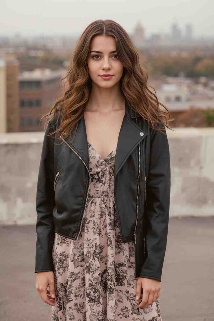 A leather jacket layered over a midi dress adds edge and versatility to your outfit.