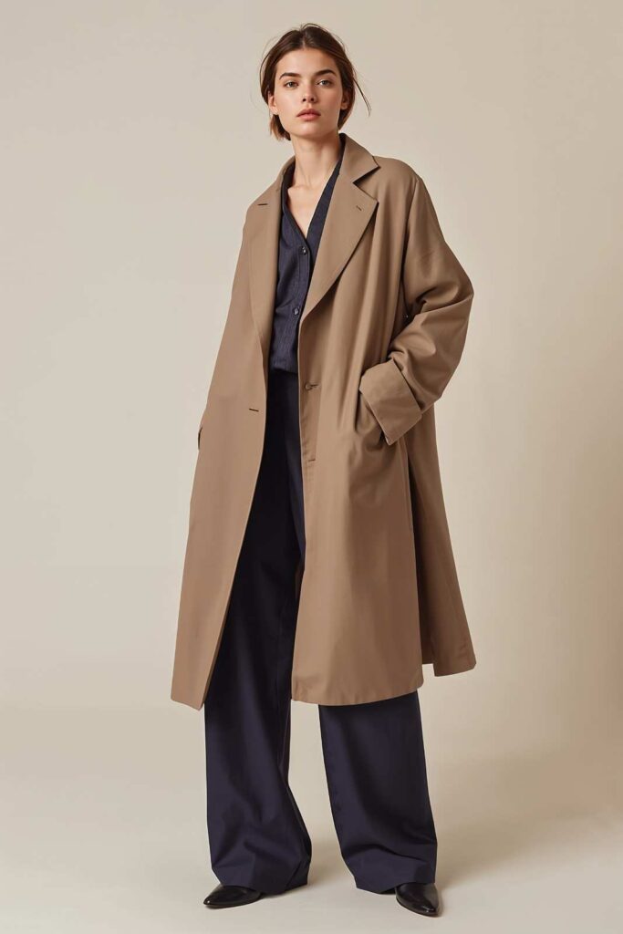 Pairing an oversized coat with wide-leg trousers creates flowy elegance and comfort.