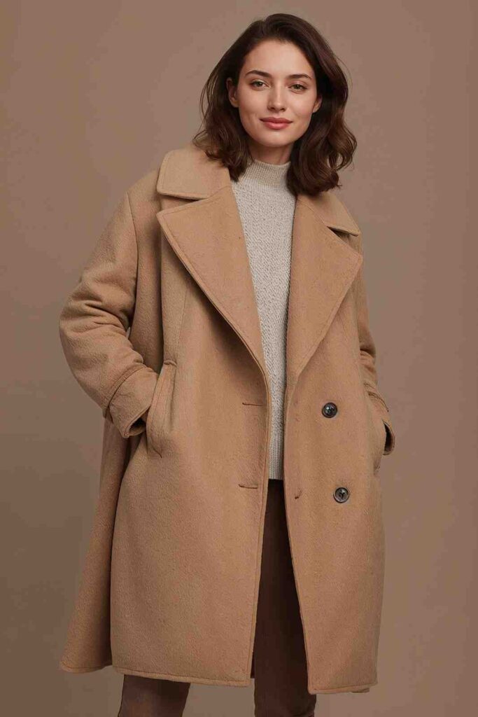 Oversized wool coats paired with cozy sweaters combine comfort with sophistication.