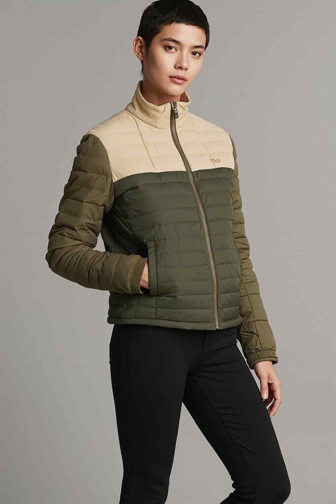 A quilted jacket paired with slim trousers keeps you warm without compromising sleekness.
