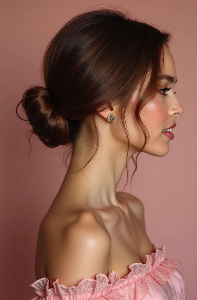 The classic low bun with a romantic twist is a sophisticated yet tender hairstyle that perfectly captures the essence of Valentine’s Day. Set low at the nape, this bun feels elegant and timeless, while soft tendrils or subtle twists add a touch of romance.