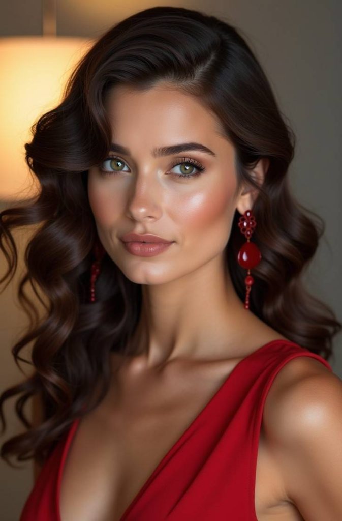 Soft romantic waves are the ultimate Valentine’s Day hairstyle, loved for their effortless elegance and timeless appeal. This look features loose, flowing curls that softly frame the face, creating a dreamy and feminine vibe that suits every occasion.