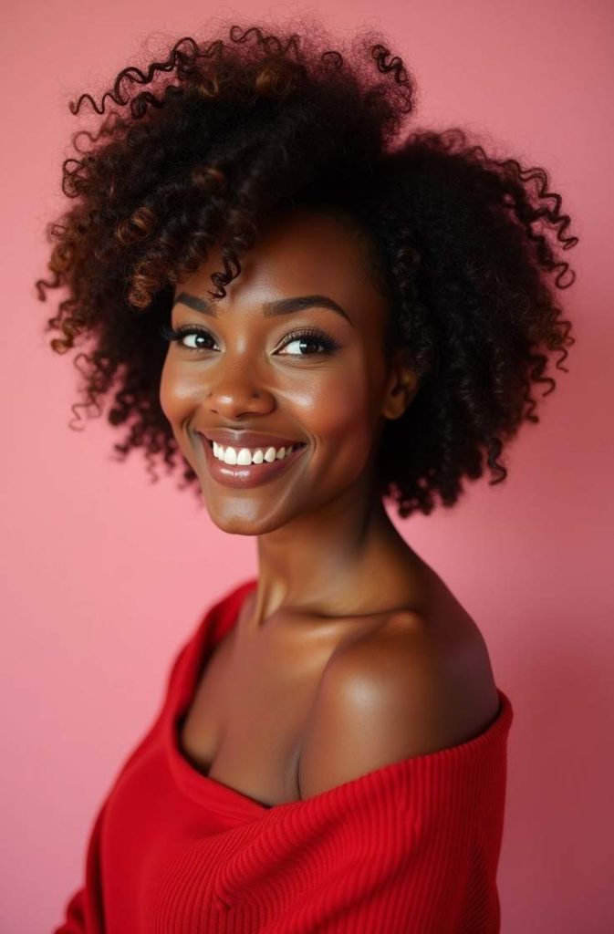 Natural curls with defined texture celebrate authentic beauty and confidence on Valentine’s Day. This hairstyle focuses on enhancing your natural curl pattern while adding definition, shine, and softness. It creates a fresh, effortless look that feels romantic and empowering.
