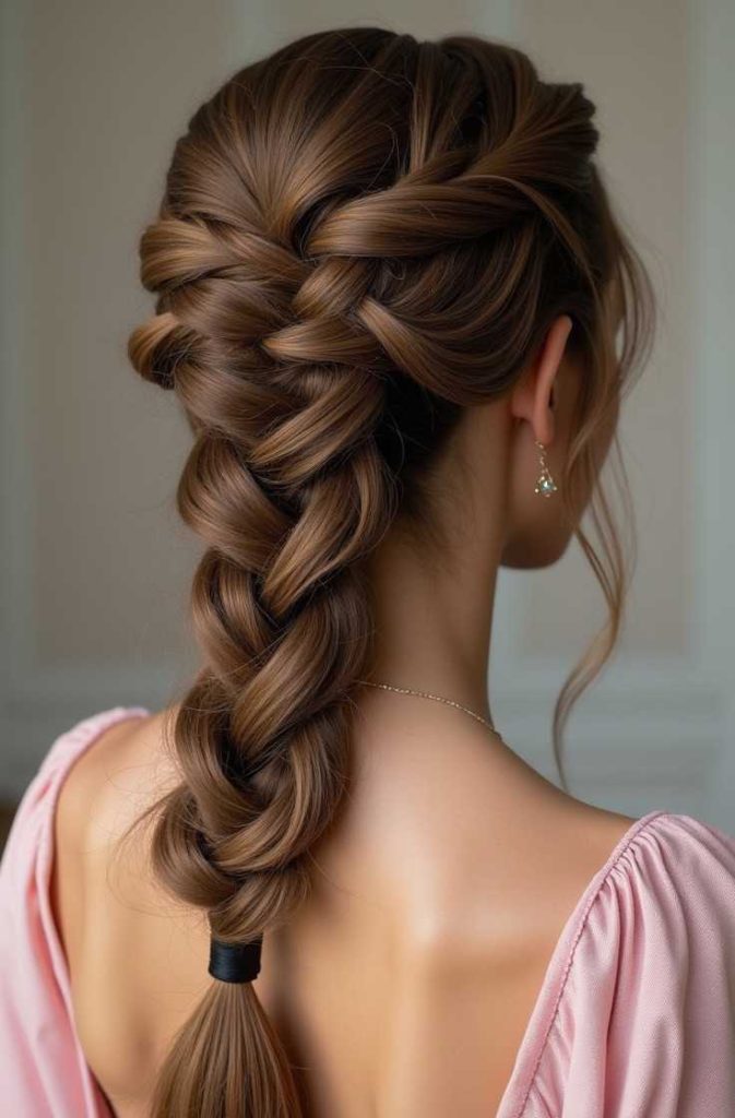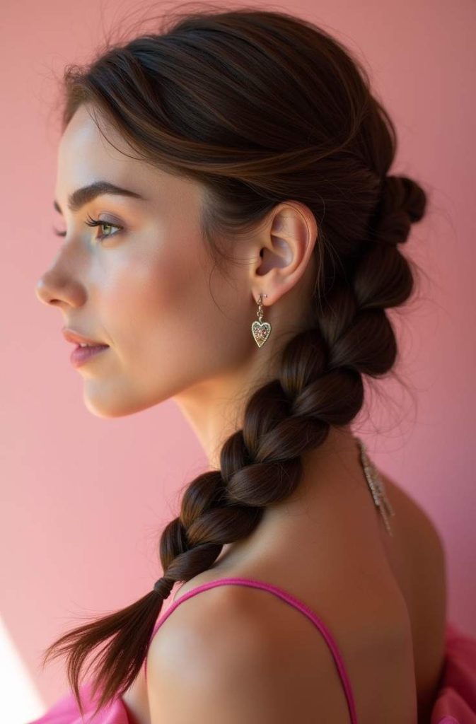 The romantic fishtail braid is a beautifully detailed hairstyle that feels both elegant and soft for Valentine’s Day. Its intricate weaving creates a visually striking look, while a loose finish keeps it romantic and wearable. This braid works wonderfully for long dates, special outings, or cozy celebrations.