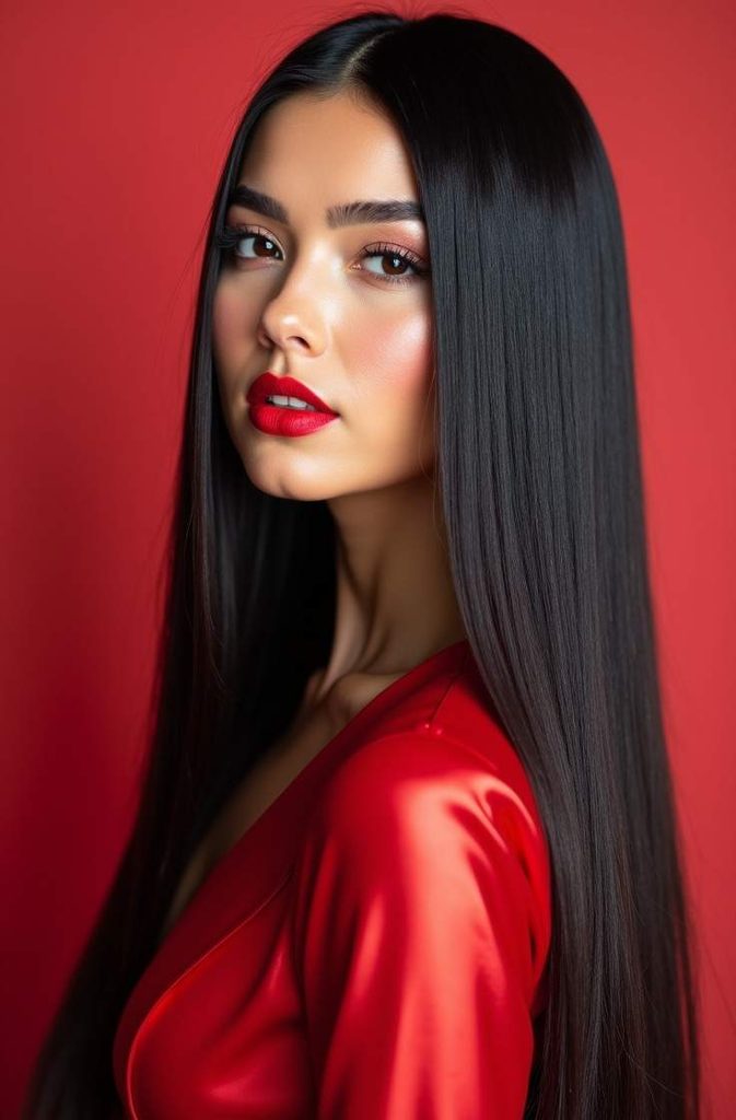 Straight and glossy hair is a timeless Valentine’s Day hairstyle that focuses on simplicity, shine, and sophistication. Smooth, sleek strands create a polished appearance that feels modern and confident without being overly styled. This look highlights healthy hair and works beautifully with minimal makeup or bold accessories.