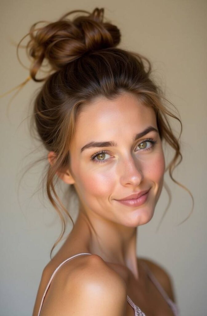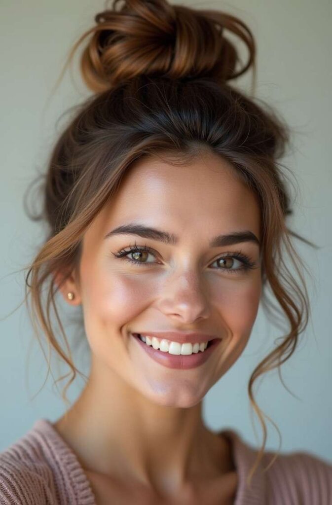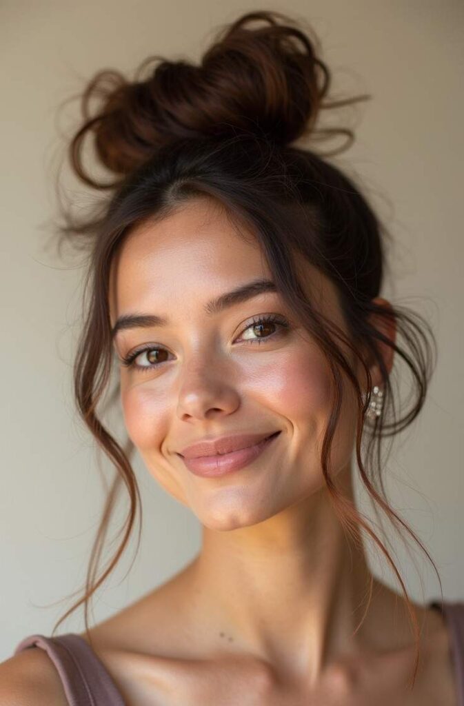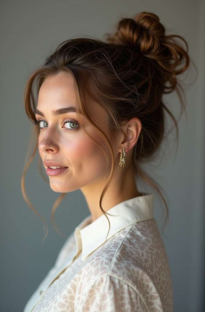 3. Messy Bun with Face-Framing Pieces