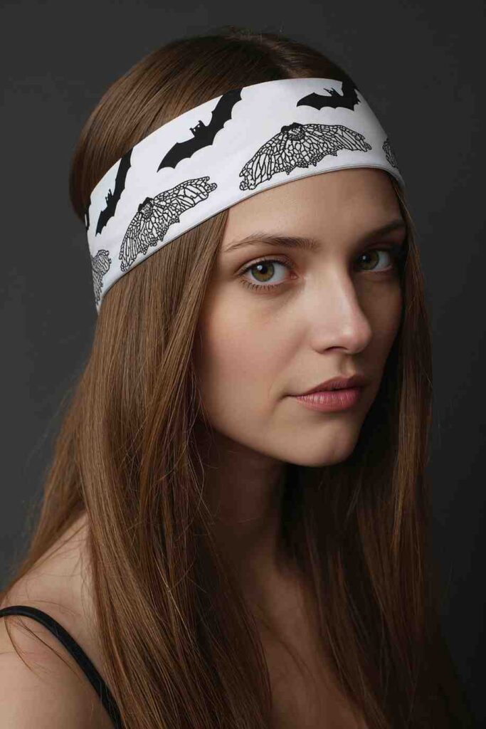 Style the hair down or half-up and place a bat-covered headband on top for instant Halloween vibes.