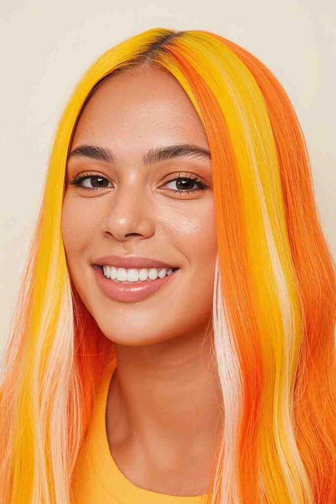 Add yellow, orange, and white streaks to your hair to mimic candy corn. Perfect for those who love festive color pops.