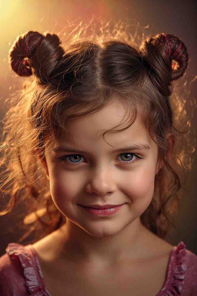 Twist two sections of hair into horn shapes on top of the head—perfect for cute little monsters or mischievous devils.