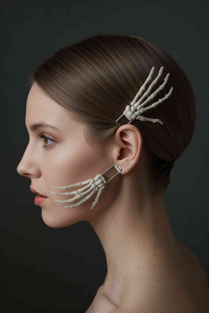 Turn a simple hairstyle into a Halloween masterpiece with skeleton hand clips gripping your hair.