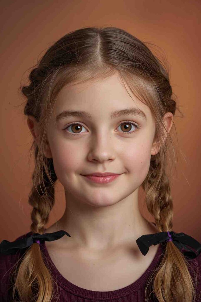 Classic braids tied with black or purple ribbons give a witchy yet cute vibe—great for themed school days or parties.
