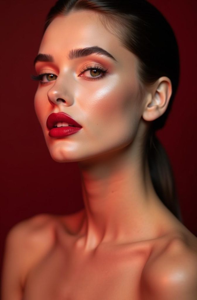 It’s ideal for Valentine’s Day or date nights when you want to look polished without heavy makeup. The contrast between clean skin and a bold lip creates a confident, romantic vibe that feels modern, chic, and timeless all at once.