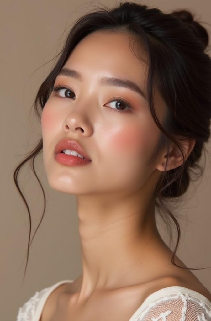 Romantic blush draping focuses on sculpting and lifting the face using blush instead of heavy contour. This technique sweeps blush across the cheeks and temples, creating a soft, flushed glow that feels youthful and feminine.