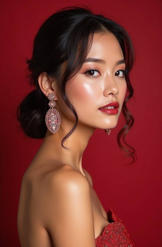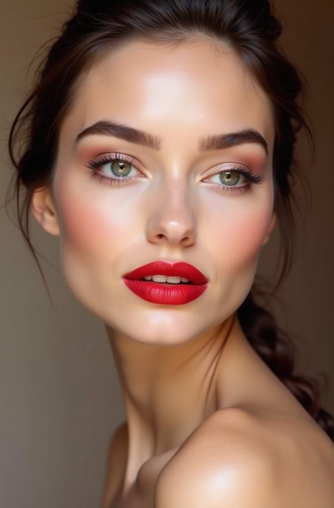 The classic red lip is a timeless Valentine’s Day makeup look that never fails to impress. Bold, confident, and undeniably romantic, red lips instantly elevate any date-night outfit. Paired with soft eye makeup and glowing skin, this look feels elegant rather than overpowering.