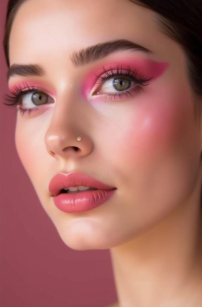 Pink eyeshadow is playful, feminine, and perfect for Valentine’s Day date night. Soft pink tones brighten the eyes while creating a romantic and flirty vibe. This look works beautifully for both subtle and bold makeup lovers.