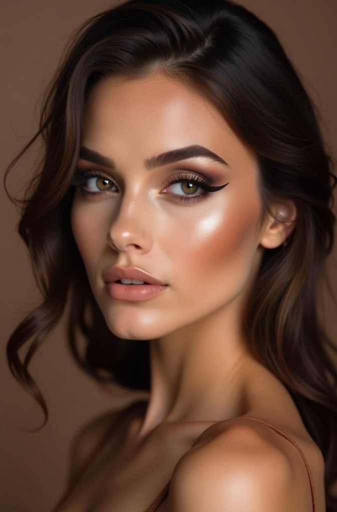 The soft brown smokey eye is a romantic twist on the classic smokey look. Using warm brown tones instead of harsh blacks creates a softer, more wearable finish that’s perfect for date night. This look adds depth and definition to the eyes while maintaining a natural, elegant feel.