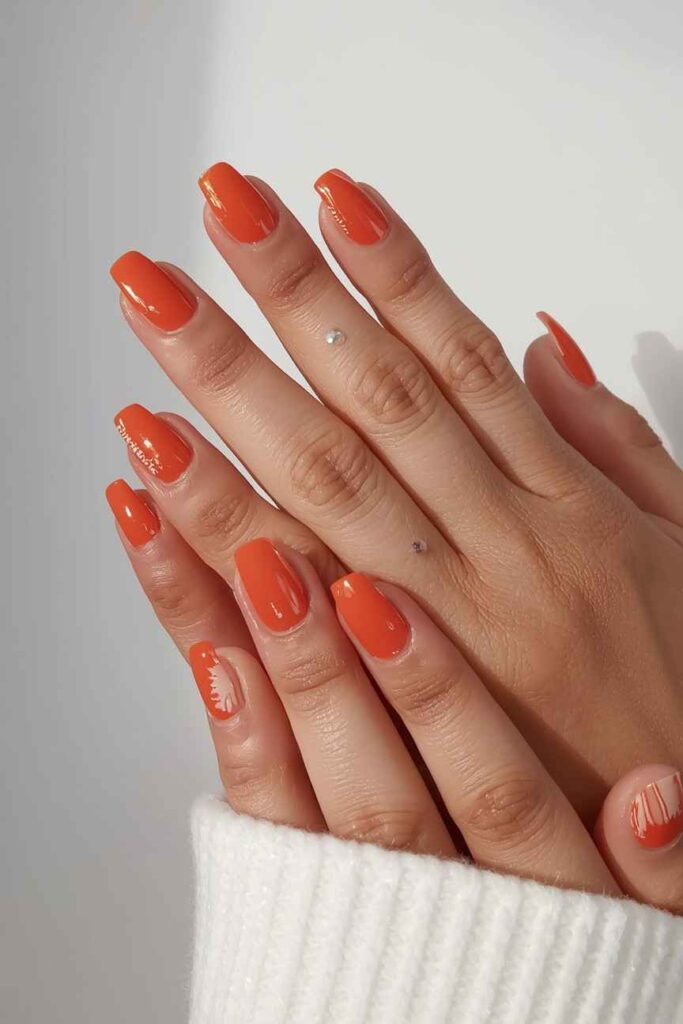 Burnt sienna nails offer a warm, earthy tone that captures autumn perfectly. Keep nails matte for a cozy, modern vibe, or add minimal glossy accents for subtle dimension. This shade works beautifully with layered fall outfits and complements a variety of accessories.