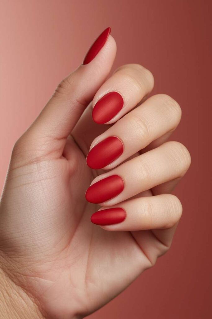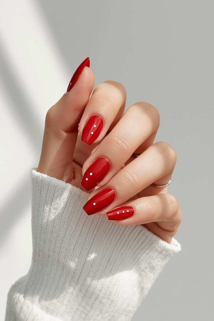 Rusty red nails evoke autumn foliage and warmth. Keep the design simple with tiny cream or gold dots to maintain minimalism while adding charm. This shade works for everyday wear, office settings, or seasonal events, offering a cozy yet polished vibe that’s quintessentially fall.
