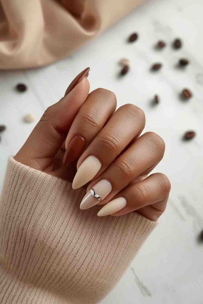 12. Coffee & Cream Accent Nails