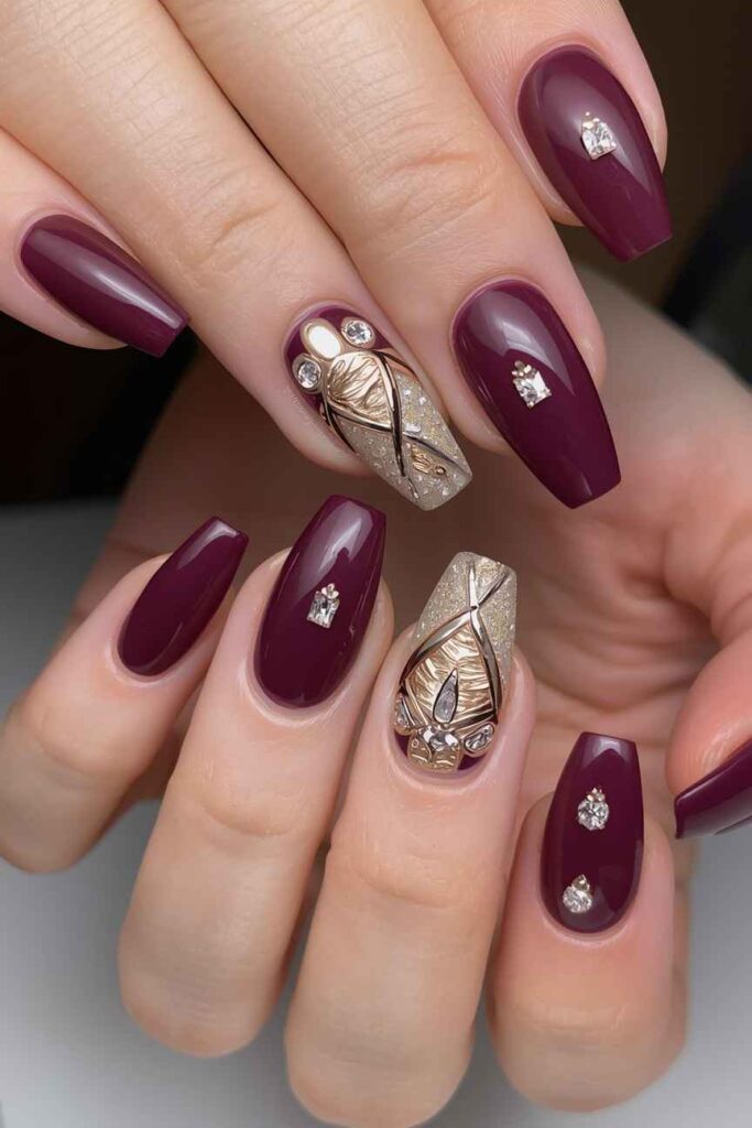 4. Deep Plum with Metallic Accents
