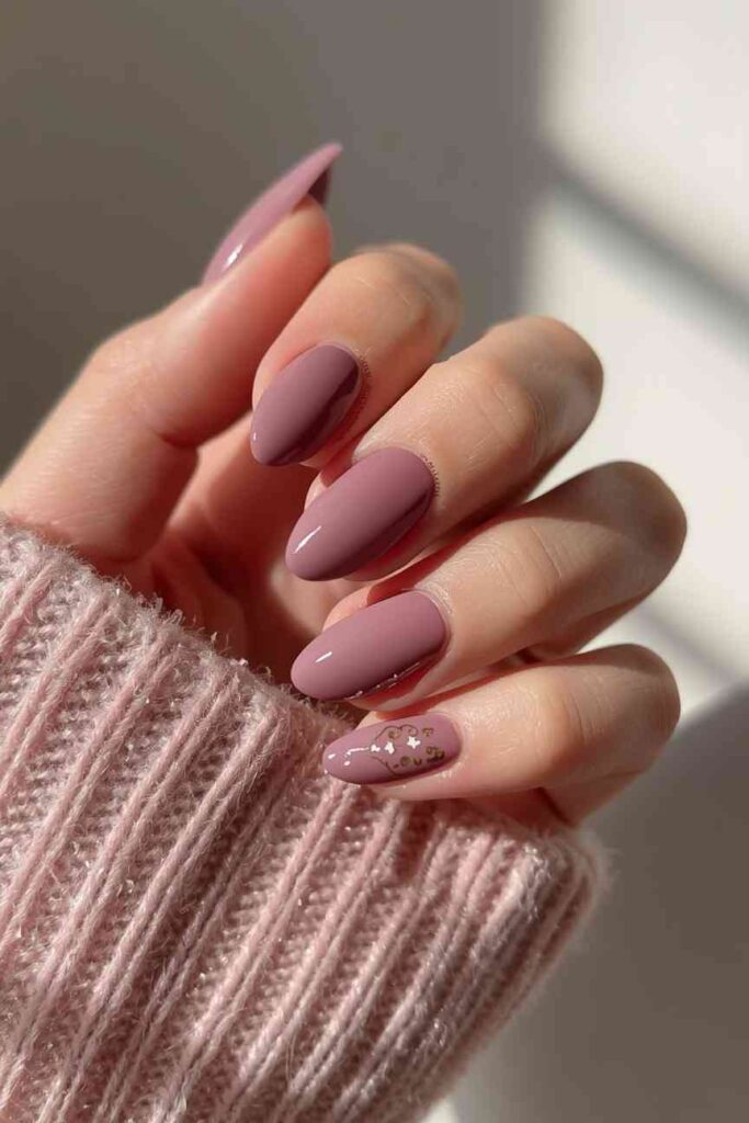 Mauve nails provide a muted, moody palette ideal for fall. Add tiny gold, cream, or brown dots for subtle sophistication. This design is understated yet stylish, offering versatility for workdays, casual outings, and evening events alike.