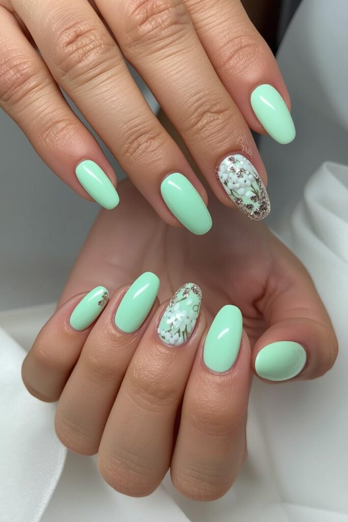 Mint green nails bring a refreshing and playful vibe to your summer wedding look. This pastel shade pairs beautifully with floral or light-colored outfits. Mint nails can be enhanced with glitter accents, delicate patterns, or French tips for a stylish touch. They are perfect for guests who want a subtle pop of color that’s fun yet sophisticated.