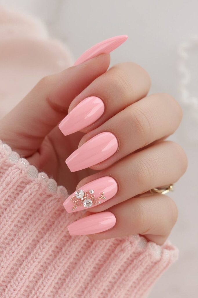 Pastel pink nails are soft, feminine, and perfect for summer weddings. This delicate shade complements almost any outfit while maintaining elegance. Pairing with subtle glitter, floral decals, or a glossy finish can enhance their charm. Pastel pink nails are ideal for guests who want a refined yet eye-catching manicure that works for both daytime and evening ceremonies.