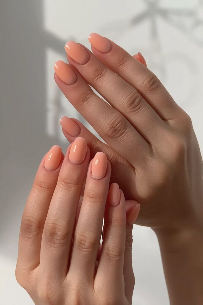 Soft peach nails are understated yet stylish. This gentle shade pairs with neutral or colorful summer outfits, creating a harmonious look. Adding a glossy finish or minimalistic patterns elevates the manicure, making it perfect for guests who prefer a classic, elegant style.