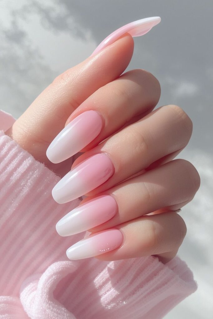 A pink and white ombre manicure creates a soft, elegant gradient that’s perfect for summer weddings. This design is versatile and pairs beautifully with floral or pastel outfits. Accent nails with glitter or rhinestones enhance the style, giving guests a chic, polished look.