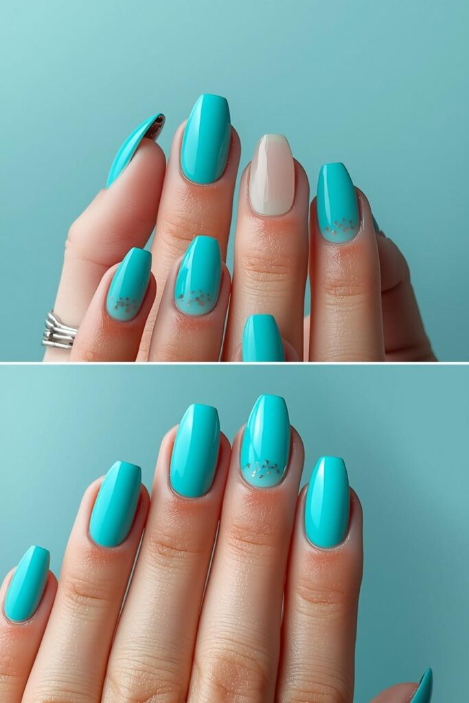 Turquoise nails add a refreshing, beachy feel to your summer wedding look. This bright shade pairs beautifully with tropical or pastel outfits. Adding subtle nail art, shimmer, or gold accents enhances sophistication. Turquoise nails are perfect for guests who want a fun and chic manicure.
