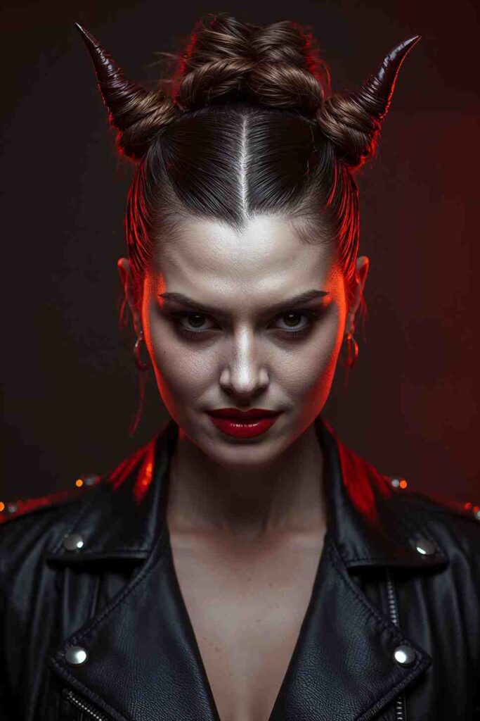 Twisted mini buns shaped into horns are ideal for devil or demon costumes.