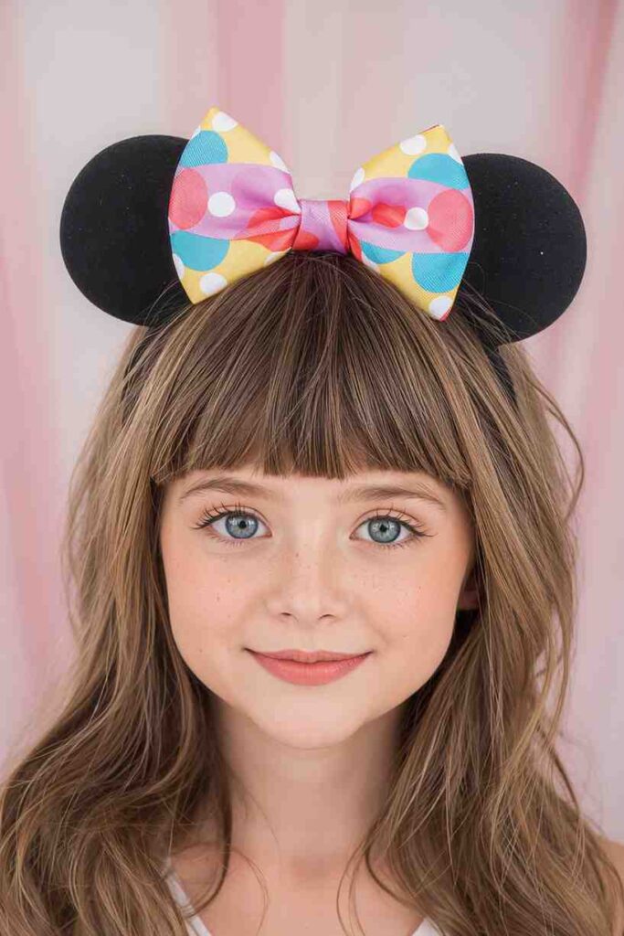 Create a hair bow with a half-up style for cute costumes like Minnie Mouse or dolls.