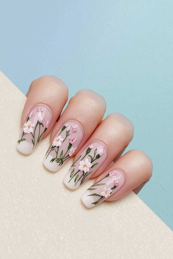 12. Delicate Floral Nail Art