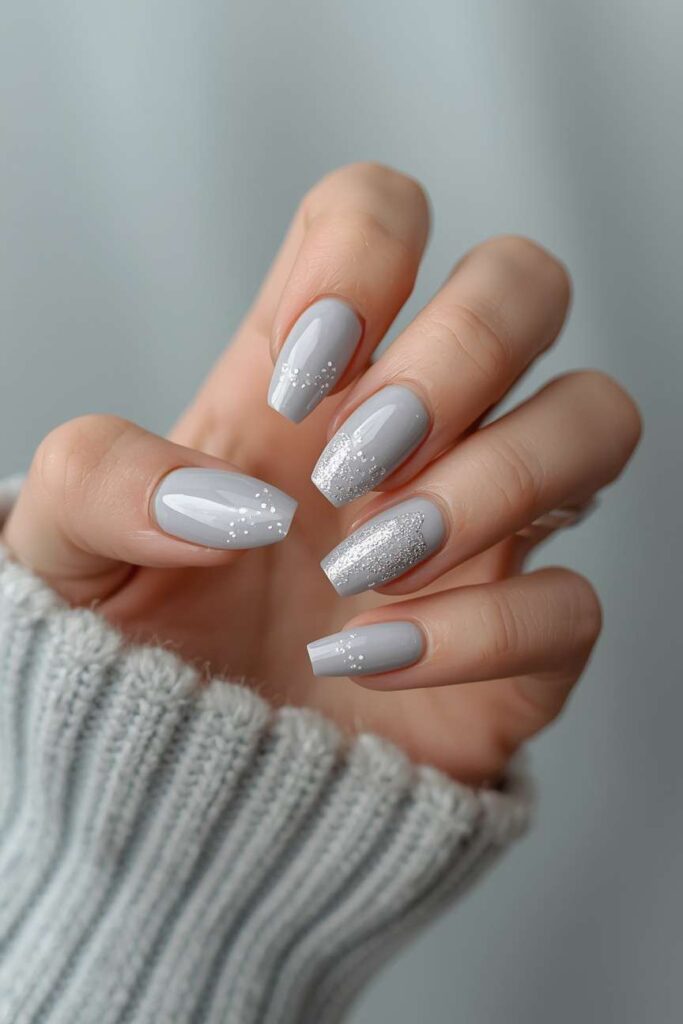 17. Light Grey Nails with Glitter