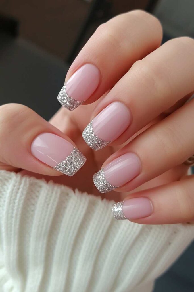 9. Sheer Pink with Glitter Tips