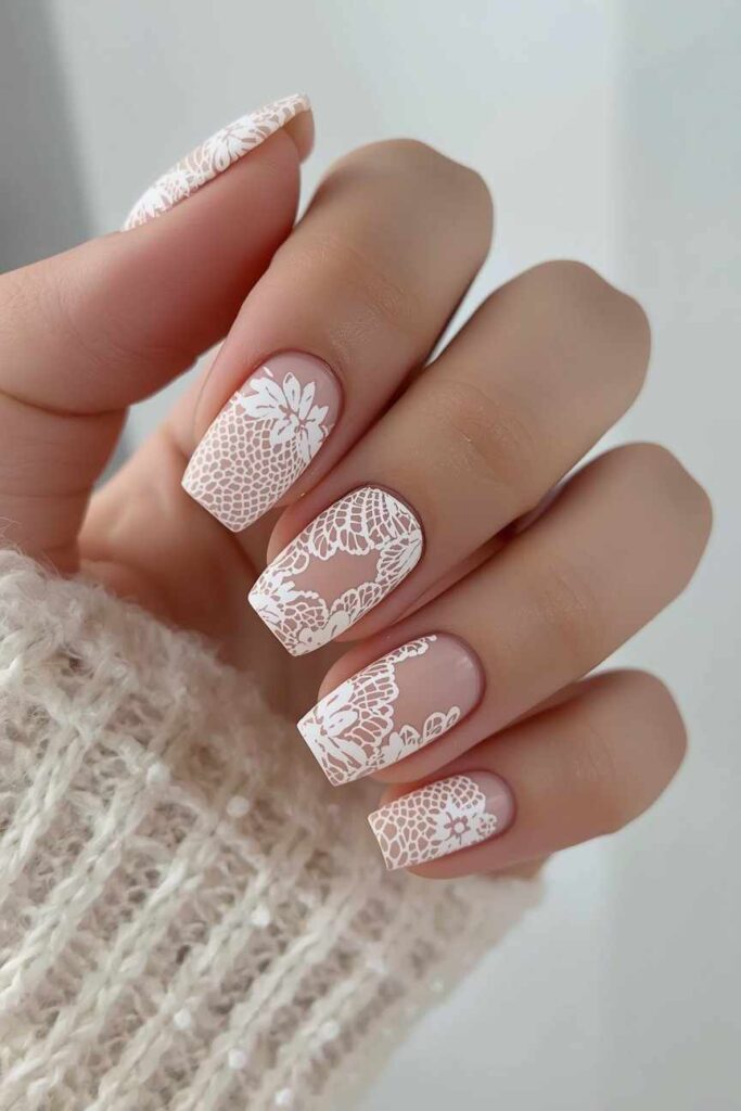 4. White Lace-Inspired Nails