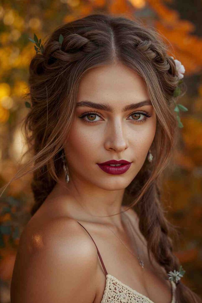 The braided crown is romantic and whimsical, making it ideal for fall parties or outdoor events. Wrapping braids around the head creates a crown effect that feels feminine and timeless.
