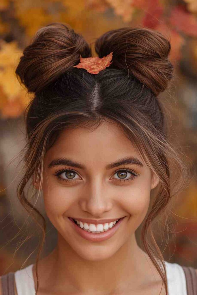 Two buns stacked or side-by-side add a playful twist to autumn hairstyles. It’s fun, youthful, and casual.