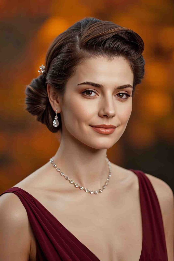 A rolled updo, where the hair is tucked and pinned inward, is elegant and neat. It’s perfect for weddings or formal dinners this fall.